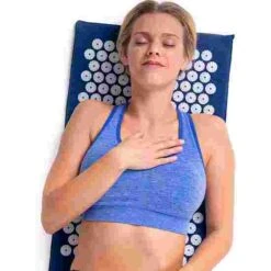 The inlay of the Sport-Thieme acupressure mat is a soft foam core. The cotton cover features 210 circular, skin-friendly plastic pads. Together with your body weight, the mat’s fine spikes can stimulate acupuncture points and reflex zones – which can boost your metabolism and blood circulation. The acupressure mat can help improve blood circulation close to the skin, connective tissue and cells, and can loosen tense muscles.