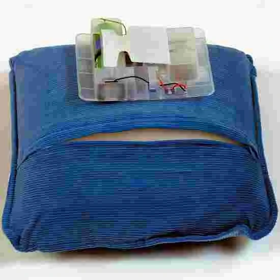 If pressure is applied to the cushion, it begins to vibrate. Once the pressure stops, the vibrating also stops. It is not only good fun to explore and experience this cushion, it also feels great for the feet, back, legs, stomach and arms. The vibrating unit and foam inlay can be removed to clean the cover (100% cotton). Battery-operated (2 size D, not included), 30×30 cm. Blue.