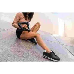Particularly quiet percussive therapy device with ergonomically shaped multi-grip handle. QX65 motor with up to 2,400 percussions per minute and 18 kg force. Battery life: 120Â minutes. Includes: Theragun “Elite”, protective carrying case, power adapter & 5Â attachments.